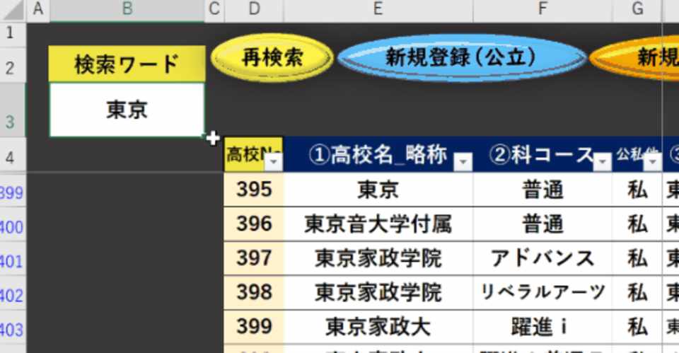 ダウンロード2 Excelvba 文字列で検索する 高校名など 学校現場へのexcelソフト活用 Note