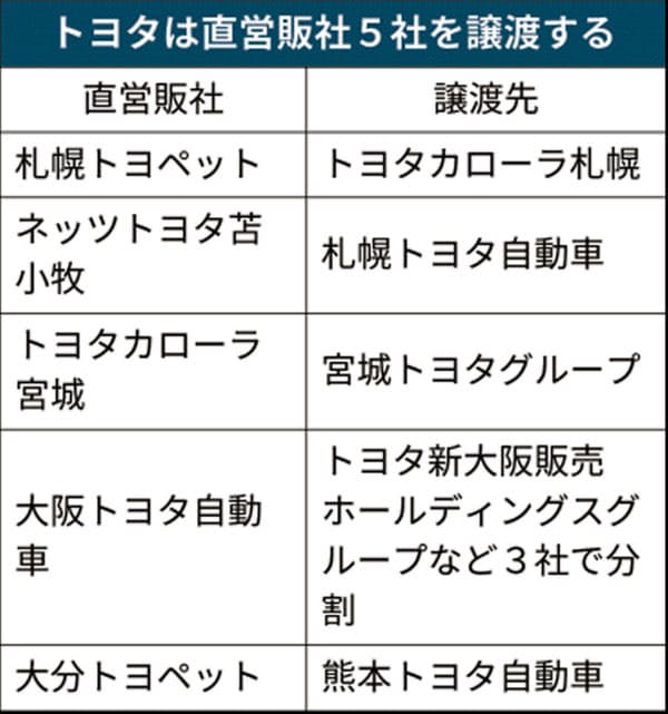 トヨタ 直営5販社を売却へ 新車販売の合理化急ぐ 日本経済新聞