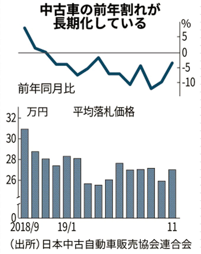 中古車競売価格 12カ月連続で前年割れ 11月 輸出不振で 日本経済新聞
